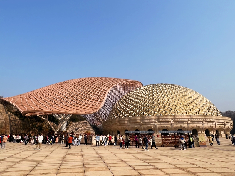 在辦理完門票后,大家依次乘景交車到達(dá)山頂,順著臺(tái)階拾階而上,到達(dá)牛首山主峰佛頂寺,整個(gè)寺院秉承唐代建筑風(fēng)格,恢弘大氣,在佛頂寺旁邊映入大家眼簾的是輝煌壯觀的佛頂宮,佛頂宮呈半圓狀,整體造型以巨型蓮花托起佛頂發(fā)髻的摩尼穹頂。大家在導(dǎo)游的講解下步入佛頂宮,觀賞與領(lǐng)悟了佛頂宮“蓮花托珍寶”的神圣意象,隨后大家進(jìn)入地宮,地宮的金碧輝煌震撼了大家,周圍墻壁雕刻的佛像栩栩如生,美麗的景象引得大家連連拍照,在佛頂宮前大家進(jìn)行了合影留念。
