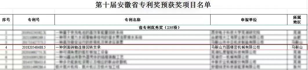 8月29日,安徽省市場監(jiān)督管理局(知識產(chǎn)權(quán)局)發(fā)布了《第十屆安徽省專利獎評選公示》(公示期為七個工作日),擬對在2022年度申報的優(yōu)秀專利獎項目進行推薦及表揚。經(jīng)過公示,馬鞍山方圓精密機械有限公司憑借“一種側(cè)面銷軸連接回轉(zhuǎn)支承”專利,獲得安徽省專利優(yōu)秀獎。