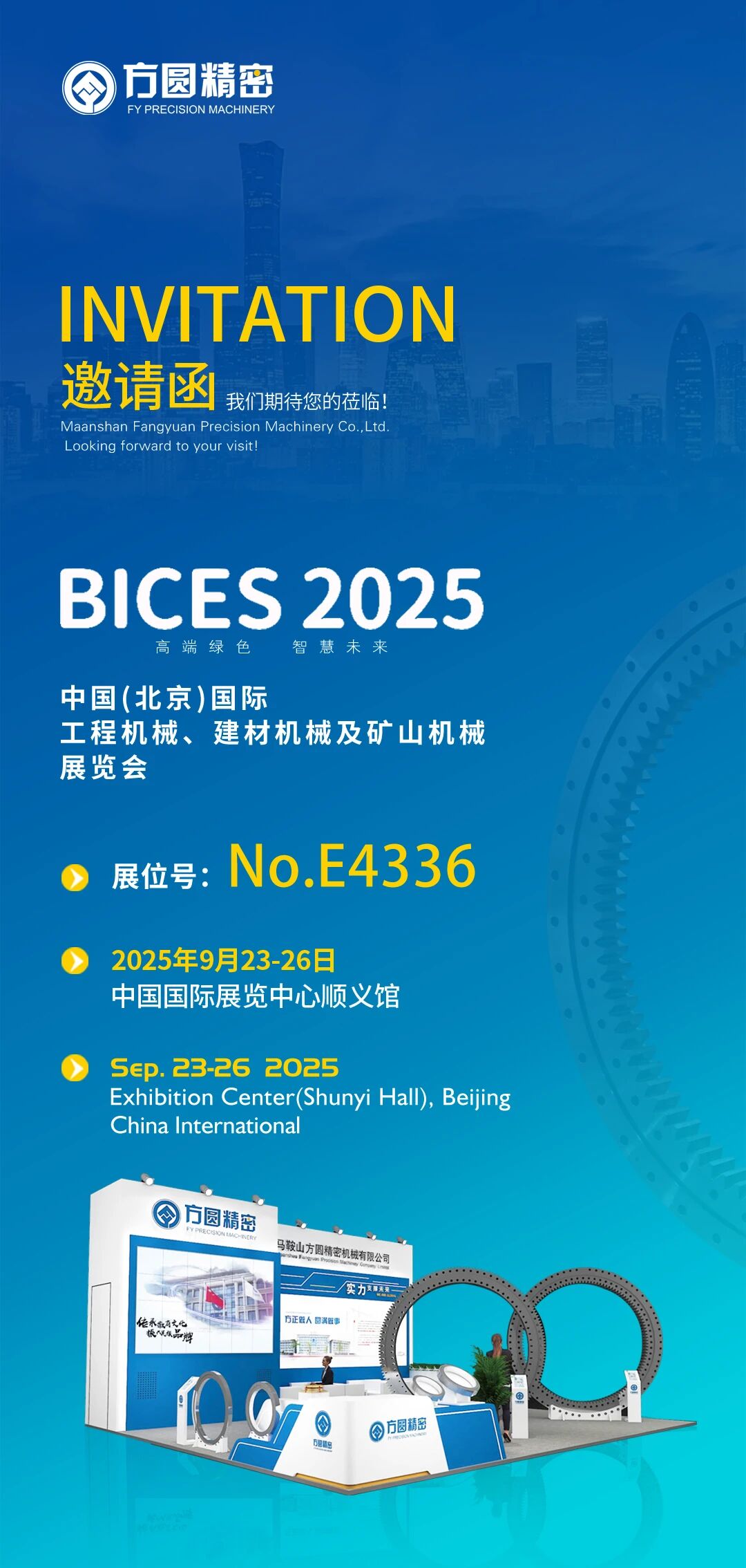 We sincerely invite you to attend the 2025 China (Beijing) International Construction Machinery, Building Material Machines and Mining Machines Exhibition(BICES), which will be held at the China International Exhibition Center (Shunyi Venue) from September 23 to 26.
