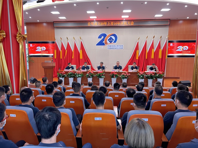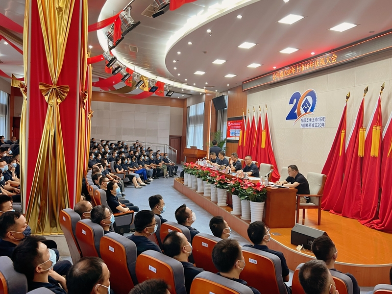 二十年甘苦風(fēng)雨兼程,十六年求索歲月如歌。8月3日,公司上市16年,成立20年慶典大會(huì)在南區(qū)一樓多功能廳隆重舉行,公司董事長(zhǎng)錢森力,總經(jīng)理鮑治國(guó),副總經(jīng)理胡闖、李厚生,財(cái)務(wù)負(fù)責(zé)人王文明,總經(jīng)理助理滕召勇在主席臺(tái)就坐。見證公司改制、上市節(jié)點(diǎn)的老員工以及公司中高層、部分職工代表、民管會(huì)委員代表總計(jì)179人參加會(huì)議。