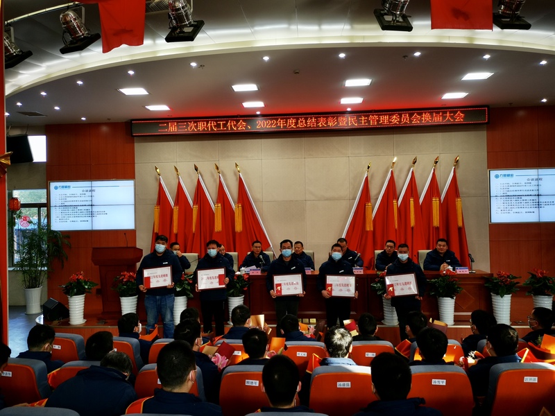 大會首先由副總經(jīng)理、工會主席胡闖作《2022年度工會工作報告》,他總結(jié)了2022公司工會工作成績與亮點提出了下一年的工作方向。表彰環(huán)節(jié),由副總經(jīng)理李厚生宣讀表彰文件,主席臺領(lǐng)導(dǎo)給一年以來對公司付出辛勤努力的個人及集體進行頒獎。