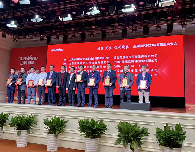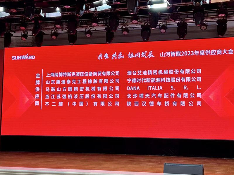 2023年2月25日,以“共生 共贏 協(xié)同發(fā)展”為主題的山河智能2023年度供應(yīng)商大會(huì)在偉人故里--湖南長沙召開。為表彰2022年我司作出的貢獻(xiàn),會(huì)上特授予我司“2022年度金牌供應(yīng)商”榮譽(yù)稱號(hào),銷售公司總經(jīng)理潘成剛應(yīng)邀參會(huì)并上臺(tái)領(lǐng)獎(jiǎng)。