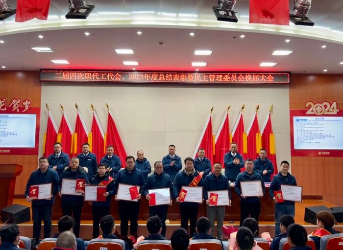 大會(huì)首先由黨委書記、工會(huì)主席胡闖作《2023年度工會(huì)工作報(bào)告》,他總結(jié)了2023公司工會(huì)工作成績與亮點(diǎn)提出了下一年的工作方向。表彰環(huán)節(jié),由總經(jīng)理助理李厚生宣讀表彰文件,公司經(jīng)營層領(lǐng)導(dǎo)給一年以來對公司付出辛勤努力的個(gè)人及集體進(jìn)行頒獎(jiǎng)。
