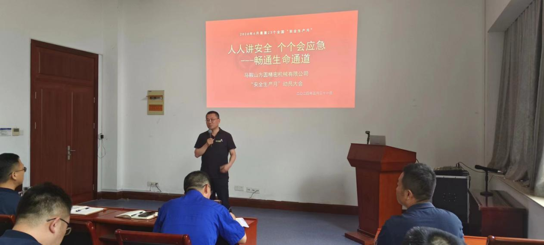 今年6月是第23個(gè)全國(guó)“安全生產(chǎn)月”,活動(dòng)主題是“人人講安全、個(gè)個(gè)會(huì)應(yīng)急——暢通生命通道”。為扎實(shí)開展好安全生產(chǎn)月活動(dòng),進(jìn)一步強(qiáng)化安全生產(chǎn)責(zé)任落實(shí),全力抓好安全生產(chǎn)工作。5月31日,馬鞍山方圓精密機(jī)械有限公司組織召開安全生產(chǎn)月活動(dòng)啟動(dòng)儀式,公司各部門主要負(fù)責(zé)同志30多人參加會(huì)議。啟動(dòng)會(huì)由公司總經(jīng)理助理李厚生主持。