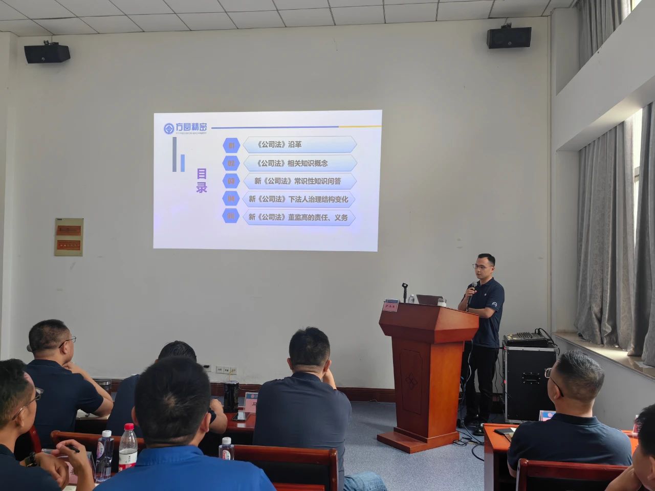 為加強公司合規(guī)管理,提高經營層風險管理意識,當天下午公司法務部組織開展了《新<公司法>相關業(yè)務知識培訓》。培訓由法務部經理尹永軍主講,方圓精密、方圓傳動科技、方圓動力科技、長沙方圓、安徽同盛環(huán)件5家董事會、經營層及職工監(jiān)事參加培訓。