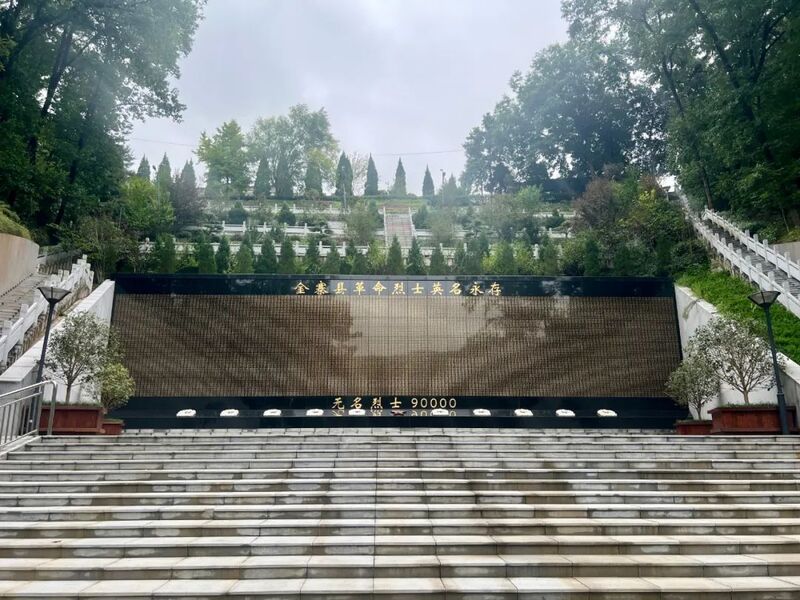 金寨紅軍廣場(chǎng)依山而建,每一段臺(tái)階的數(shù)量各有不同,代表著金寨縣為中國(guó)革命作出的不同貢獻(xiàn)——59級(jí)臺(tái)階,寓意金寨縣誕生的59位共和國(guó)開(kāi)國(guó)將軍;50級(jí)臺(tái)階,寓意著被追認(rèn)的金寨籍縣團(tuán)級(jí)以上革命烈士500余位;49級(jí)臺(tái)階,寓意著金寨縣于1949年全境解放;10級(jí)臺(tái)階,寓意著革命戰(zhàn)爭(zhēng)年代金寨縣10萬(wàn)青年參軍征戰(zhàn),為國(guó)捐軀……邁向階梯盡頭,“金寨縣革命烈士紀(jì)念塔”高高聳立,劉伯承元帥題寫(xiě)的“燎原之火”四個(gè)鍍金大字刻在24米高的紀(jì)念塔正面,默默地訴說(shuō)著大別山老區(qū)為中國(guó)革命事業(yè)作出的不可磨滅的貢獻(xiàn)。