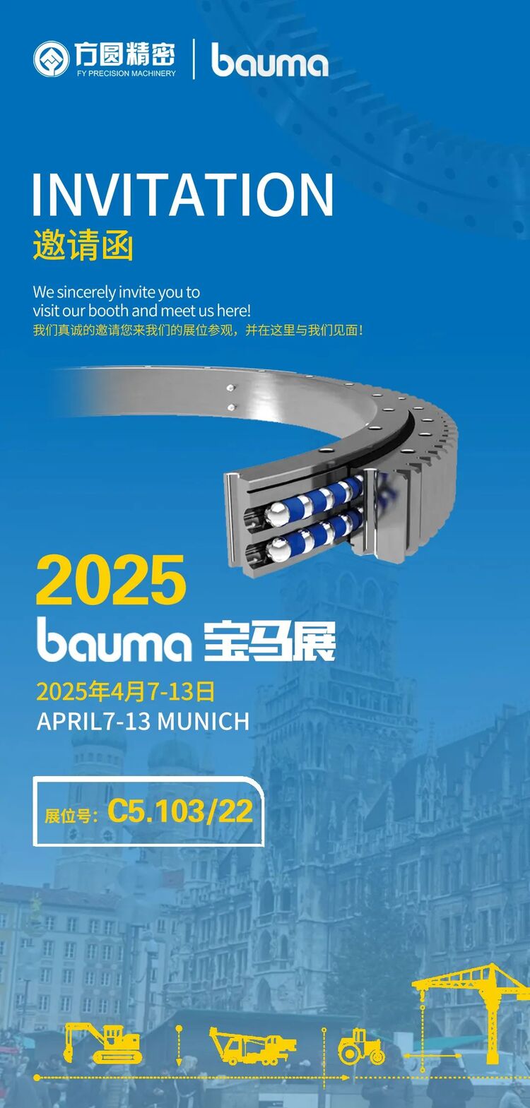 2025年4月7-13日,工程機械領域的國際頂級盛會,第34屆德國慕尼黑BAUMA展,將在慕尼黑新國際博覽中心震撼啟幕。德國慕尼黑工程機械展-寶馬展(BAUMA)是全球規(guī)模最大、最具影響力的國際工程機械、建材機械、礦山機械行業(yè)專業(yè)展覽會。是了解和評價工程機械行業(yè)發(fā)展相關技術進步的重要標尺,為規(guī)劃開拓國際市場的工礦機械企業(yè)搭建了良好的平臺。 方圓精密誠摯邀請您蒞臨我們的展位,期待與您面對面交流,探討合作機會。您的光臨將是我們莫大的榮幸!